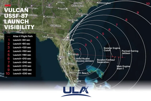 Выходя за пределы Флориды, в прошлом запуск SpaceX Falcon Heavy был виден жителям Мертл-Бич, а другие ракеты наблюдали жители Нью-Джерси и Джорджии. Эти примеры подчеркивают, насколько впечатляющее зрелище может стать запуск ракеты Vulcan, который, по оценкам ULA, будет виден с большинства территории Флориды.
